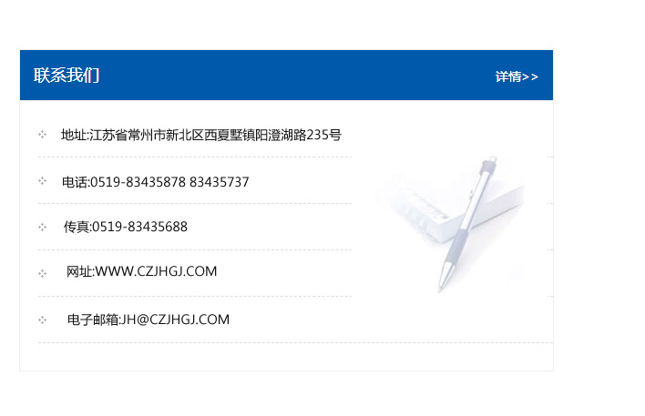 傳真:0519-83435688    郵編:213135    網址:WWW.czjhgj_com.hbzmyh.com    電子郵箱:JH@czjhgj_com.hbzmyh.com